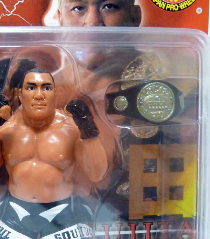 a Japanese Pro-Wrestling figure packaged with two Championship belts.