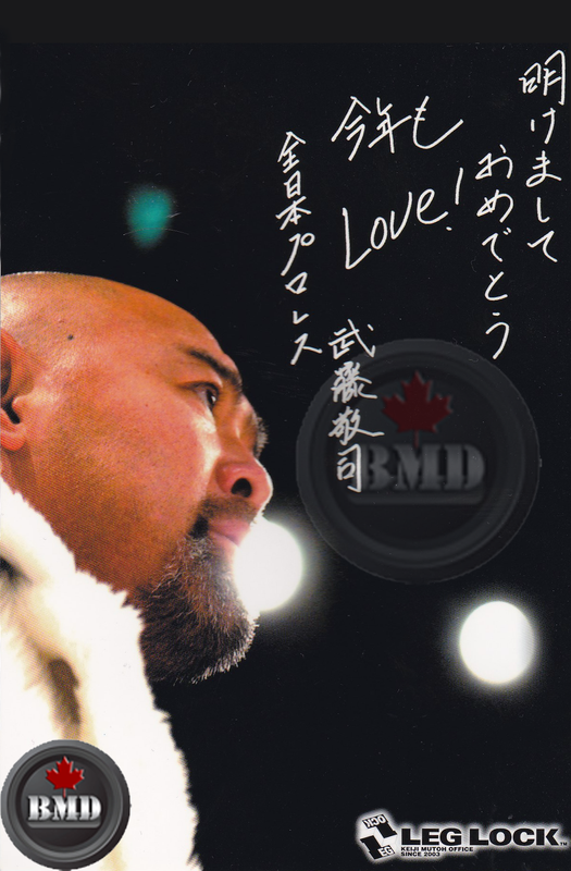 The first postcard features a great shot of Keiji Mutoh in his entrance attire.