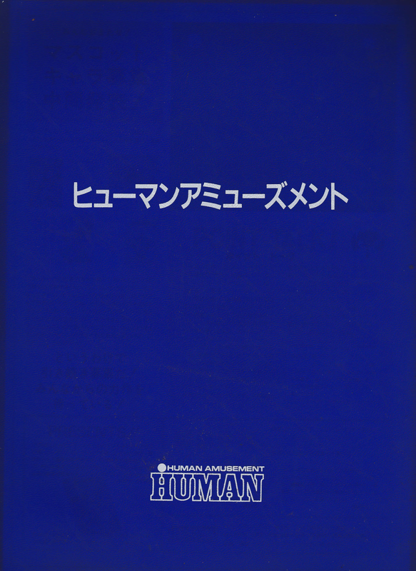 The pamphlet comes in a sturdy presentation folder. The Japanese text reads "HUMAN AMUSEMENT".